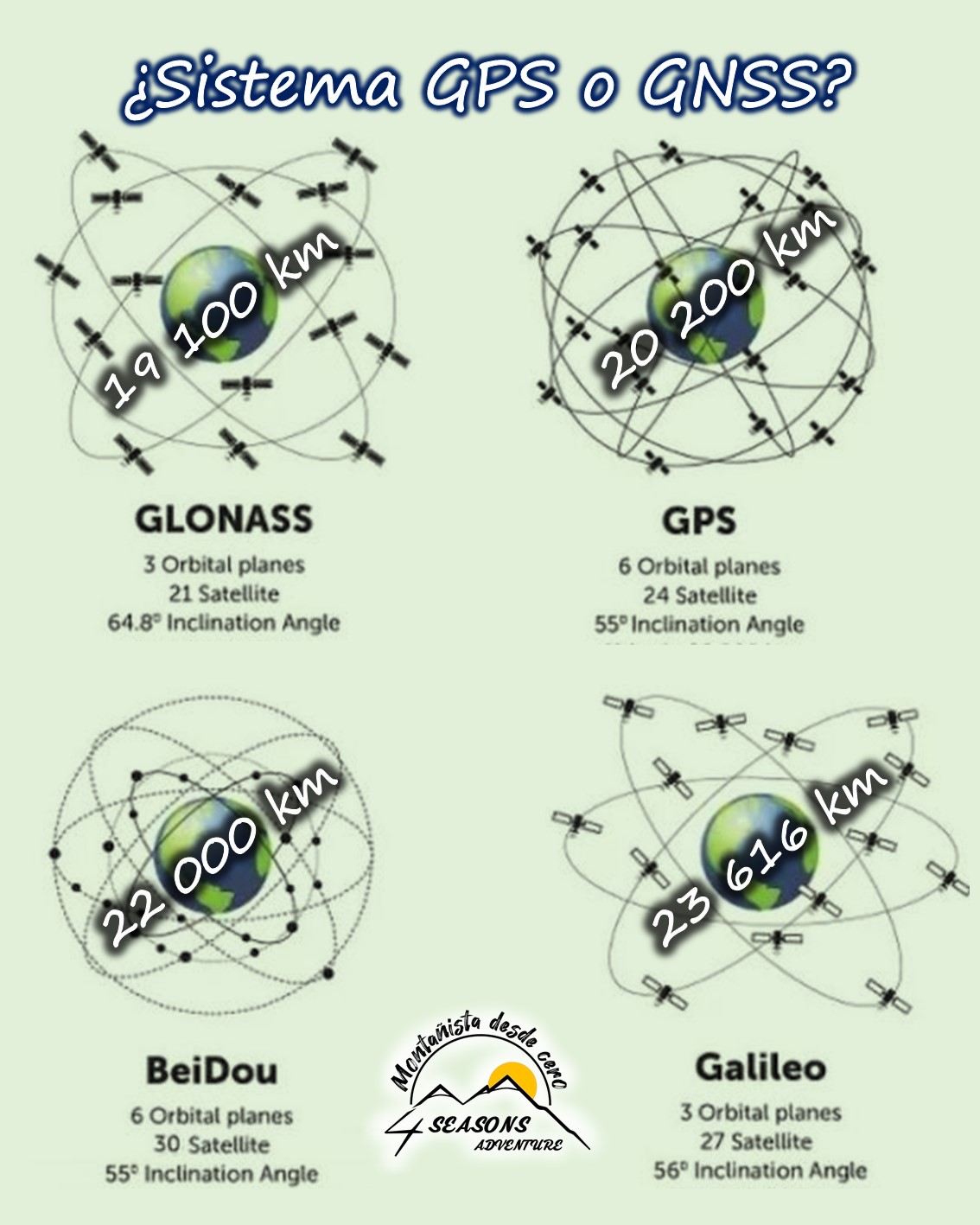 BeiDou (BDS): Operado por China. Cada sistema está ubicado a diferentes altitudes (desde 19,100km el GLONASS hasta 35,786km algunos satélites de BeiDou).