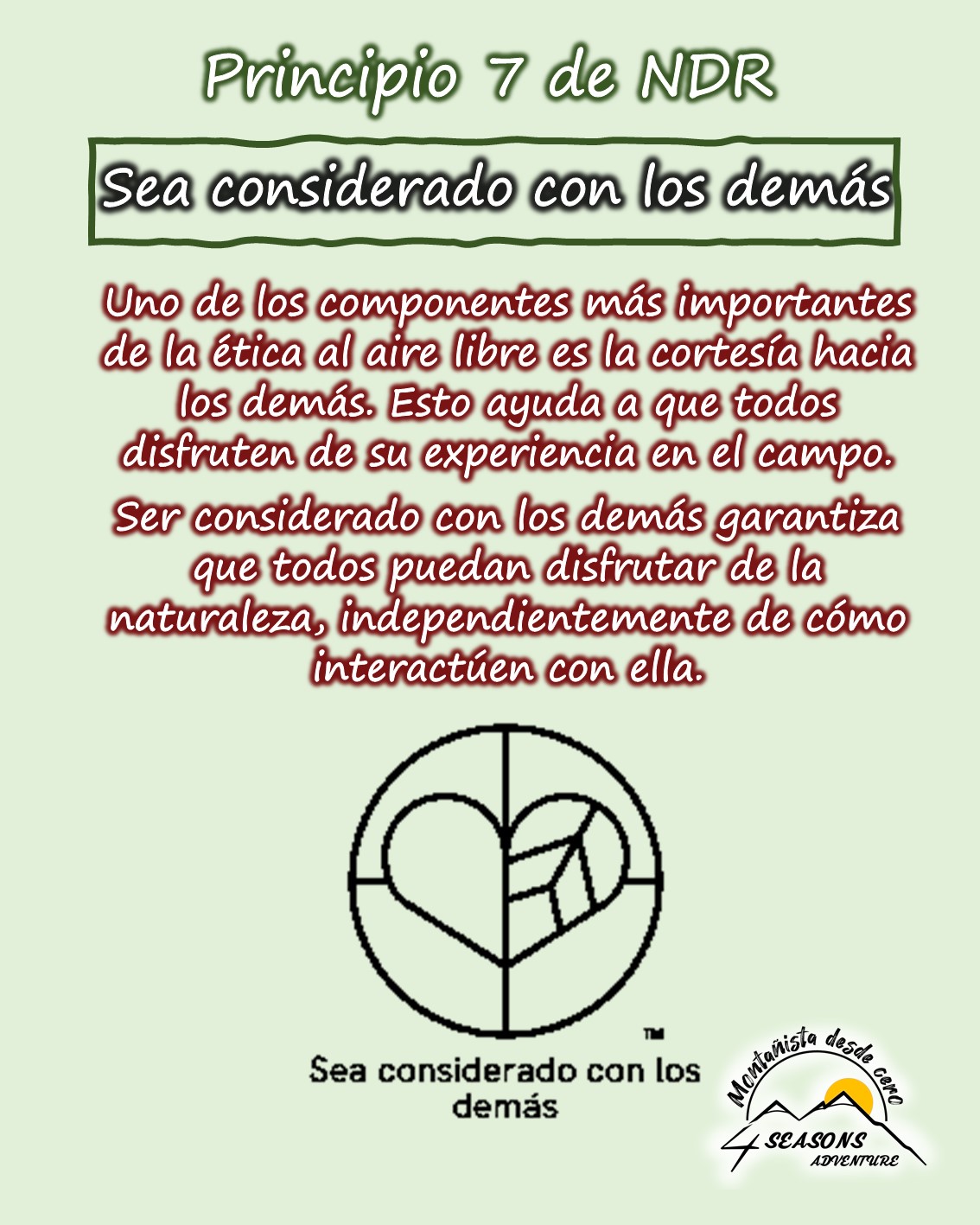 Ser considerado con los demás garantiza que todos puedan disfrutar de la naturaleza, independientemente de cómo interactúen con ella.