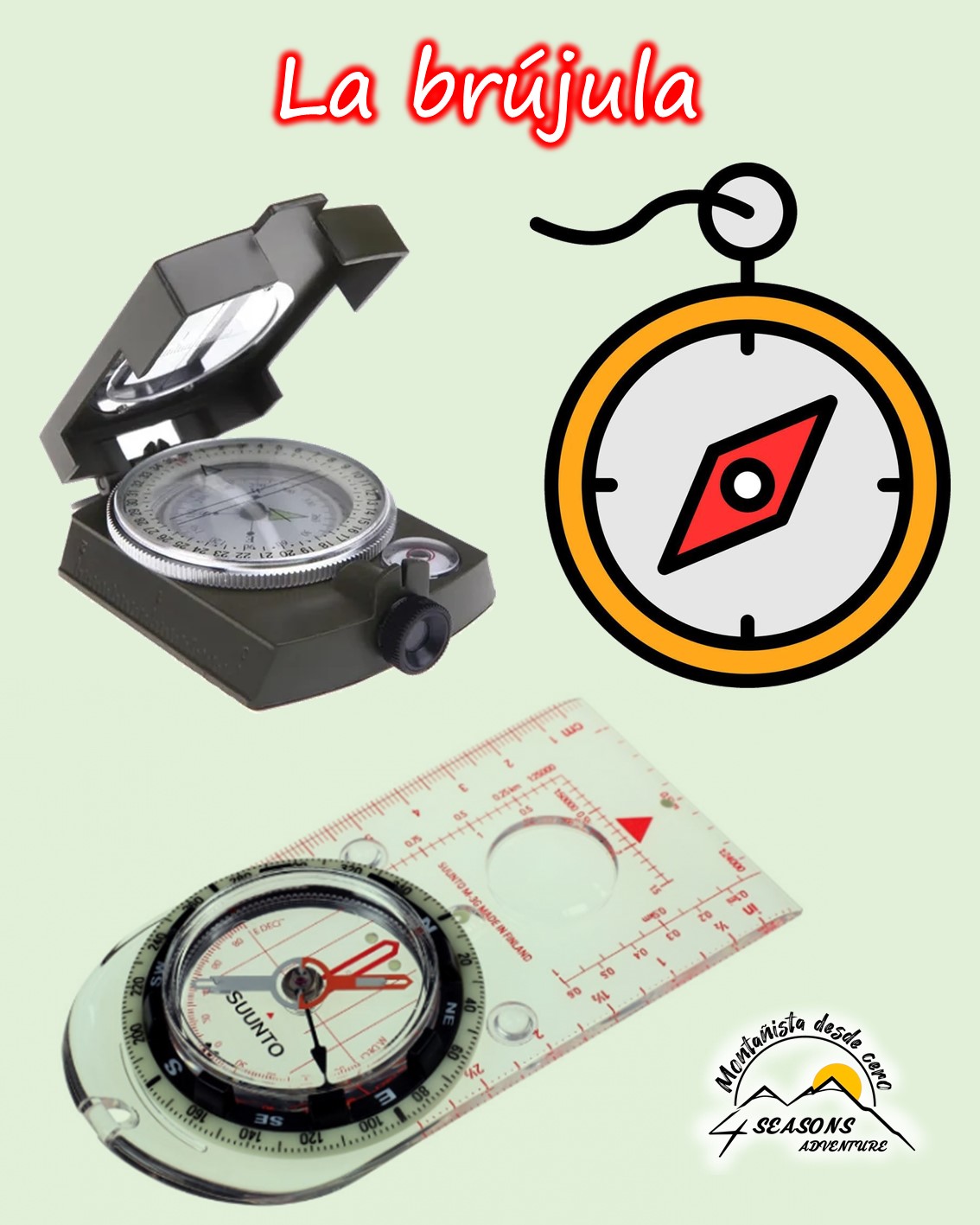 Esto nos permite orientarnos y determinar direcciones. Funciona gracias a una aguja imantada que está flotando sobre un fluido (generalmente aceite mineral o queroseno, aunque en brújulas de baja calidad suele ser simple agua).