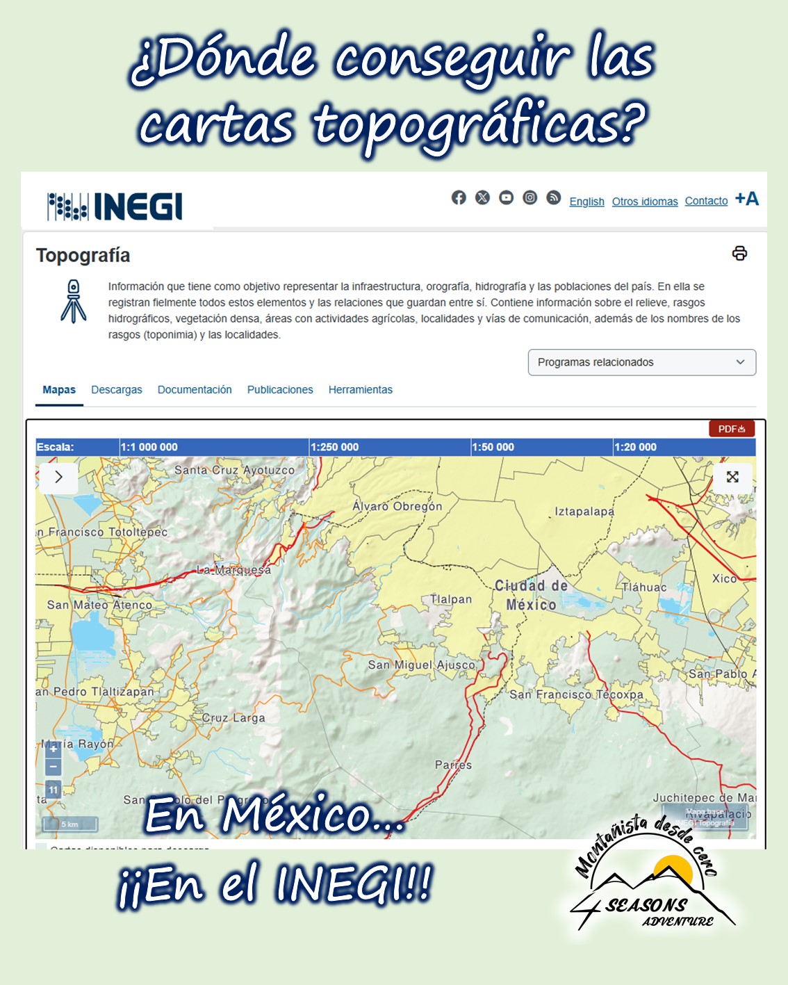 Para conseguir una carta topográfica en México, hace poco más de una década, teníamos que ir a alguna oficina del INEGI a solicitarla (en papel tamaño 90x60cm).
