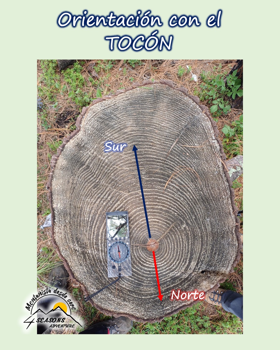 El tocón de un árbol es la parte de éste que queda una vez que se ha talado. El principio se basa en que los árboles crecen más rápido del lado que reciben más luz solar, esto hace que los anillos de crecimiento sean más anchos y separados en la dirección que reciben más sol.