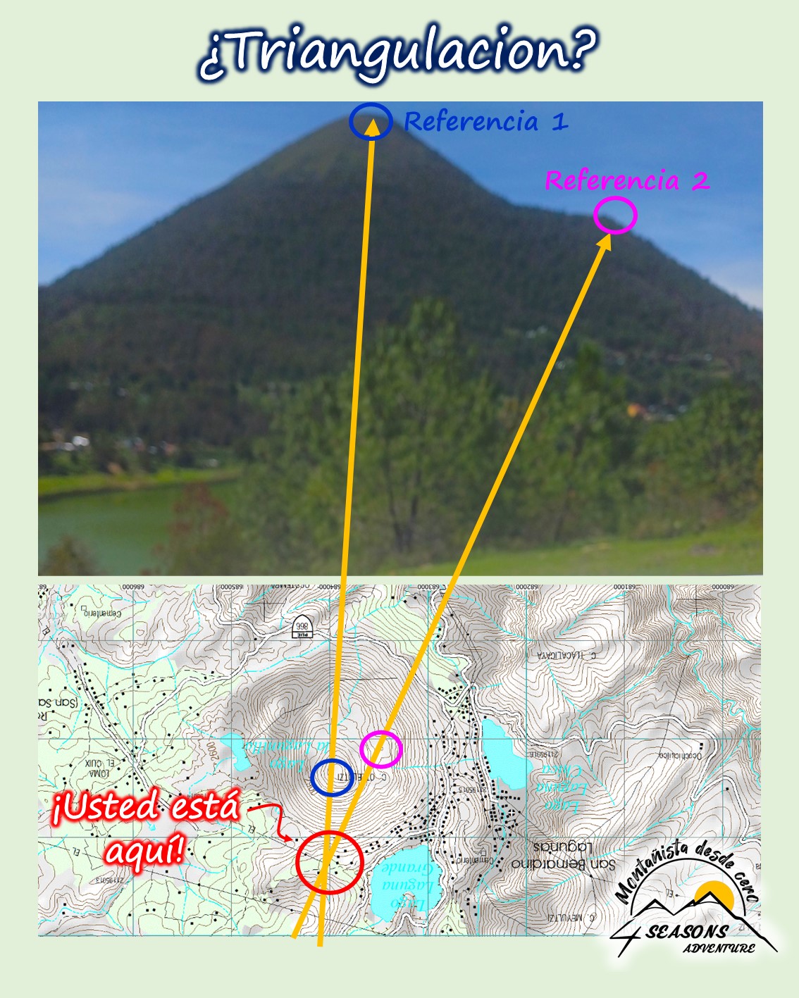 La triangulación sirve para estimar nuestra posición dentro del terreno, utilizando una brújula y un mapa de la zona.